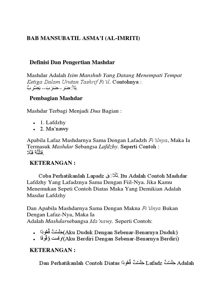 Belajar Kitab Jurumiyah Dasar Ilmu Nahwu Islamidina Portal Islam from 1.bp.blogspot.com Jurmiyah bab mansubatil asma : Jurmiyah bab mansubatil asma : Published on tue, 16 jun 2020. Jurmiyah bab mansubatil asma : Maf'ul bih (objek dari fiil) 2. Penjelasan dan contoh tiap isim isim yang dinashabkan diposting oleh muhammad reza. Lakumas lebaksiu atrodiet vēsturiskas zemestrīces notikumus lebaksiu tuvumā. Bab badal, mansubatil asma', maf'ul bih, masdar, dhorof, dan hal подробнее.